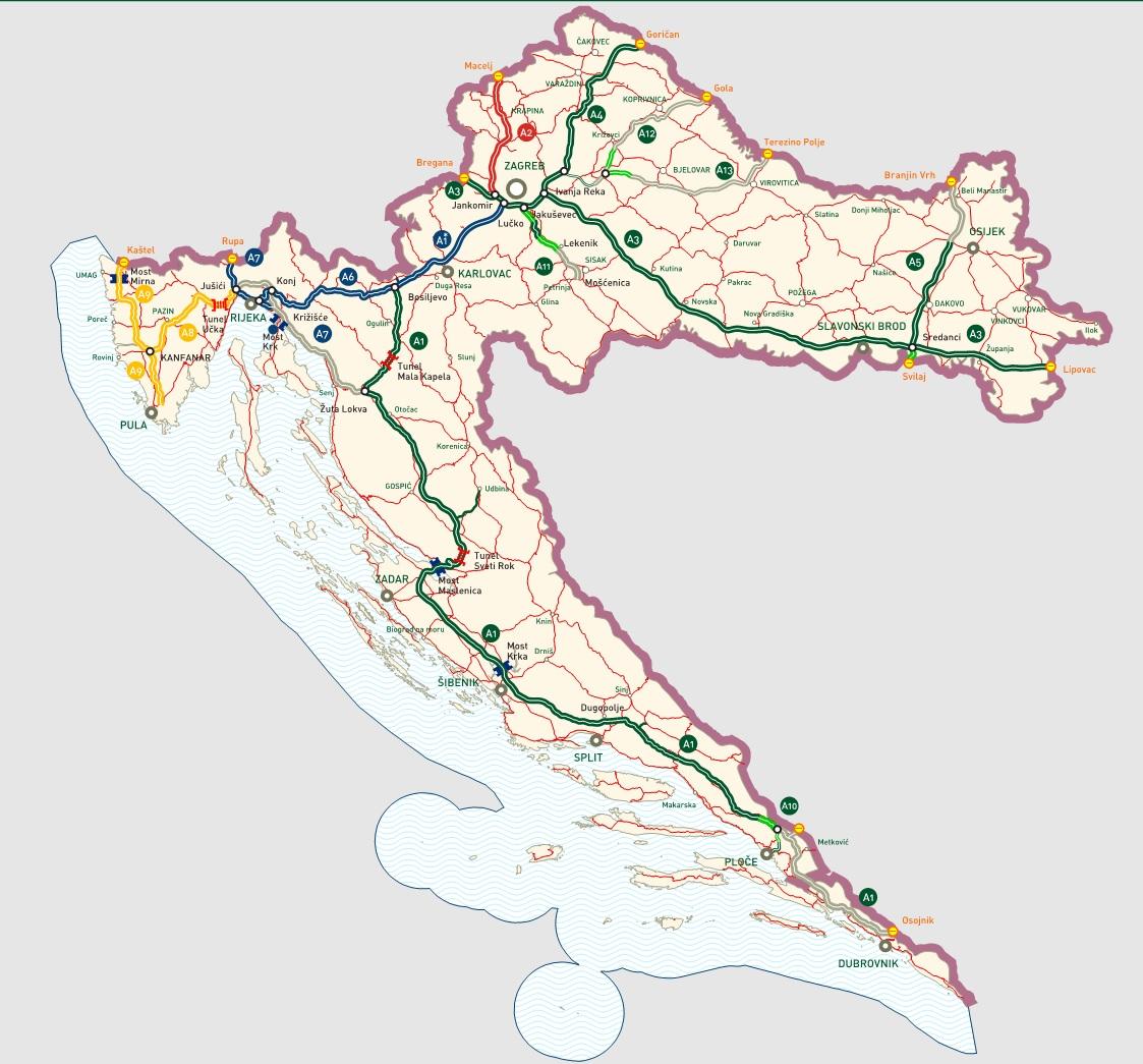Croatian motorways map. Croatia highway map (Southern Europe - Europe) to print. Croatia highway map (Southern Europe - Europe) to download.